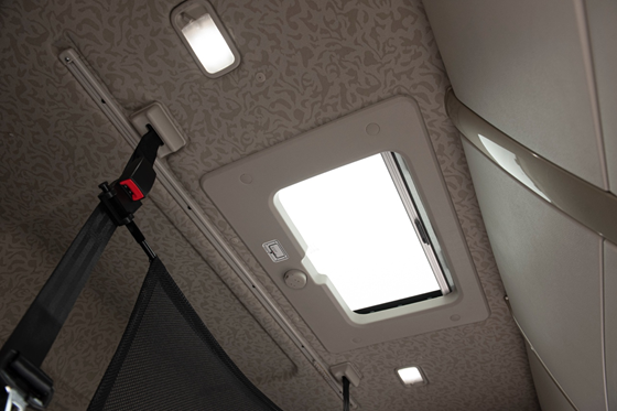Cửa sổ trời tạo không gian thoáng đãng cho cabin xe khi được mở ra. Đây là cải tiến mới nhất tại Việt Nam dành cho dòng xe tải nặng. Thiết kế sàn phẳng, chiều cao từ mặt sàn đến nóc xe cao 1.92 m tạo không gian rộng rãi, thoải mái.